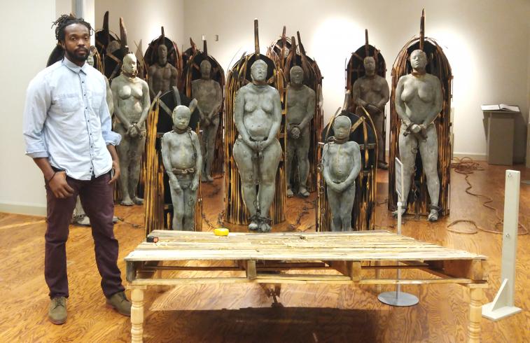 The Conversations with Artists series provides an opportunity for the DC community and University of Maryland students to hear from leading and emerging artists in an informal setting. STEPHEN HAYES is a mixed media sculptor and creator whose work references socio-cultural race dynamics rooted in historical references. Originally from Durham, North Carolina, Hayes completed his MFA at the Savannah College of Art and Design and has taught at Georgia State University. His work seeks to change societal perceptions of Black identity and otherness through the vulnerability of sharing experiences and the catharsis of collective realizations. Hayes was an Arts Lab fellow at Halcyon Arts Lab in 2017–2018. At the intersection of art and social change, this nine-month residential fellowship is designed to provide support and resources to emerging artists working on projects which address issues of social justice, civic engagement, and community building. Arts Lab fellows strive to hone their practices and grow as leaders in their respective fields.