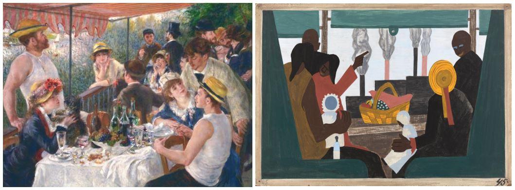 How can we see differently? From a different perspective? Through a different lens? In one of the 2021 Zoom sessions, we considered Renoir’s Luncheon of the Boating Party. How do we see it differently when it’s in conversation with Jacob Lawrence’s Migration Series?
