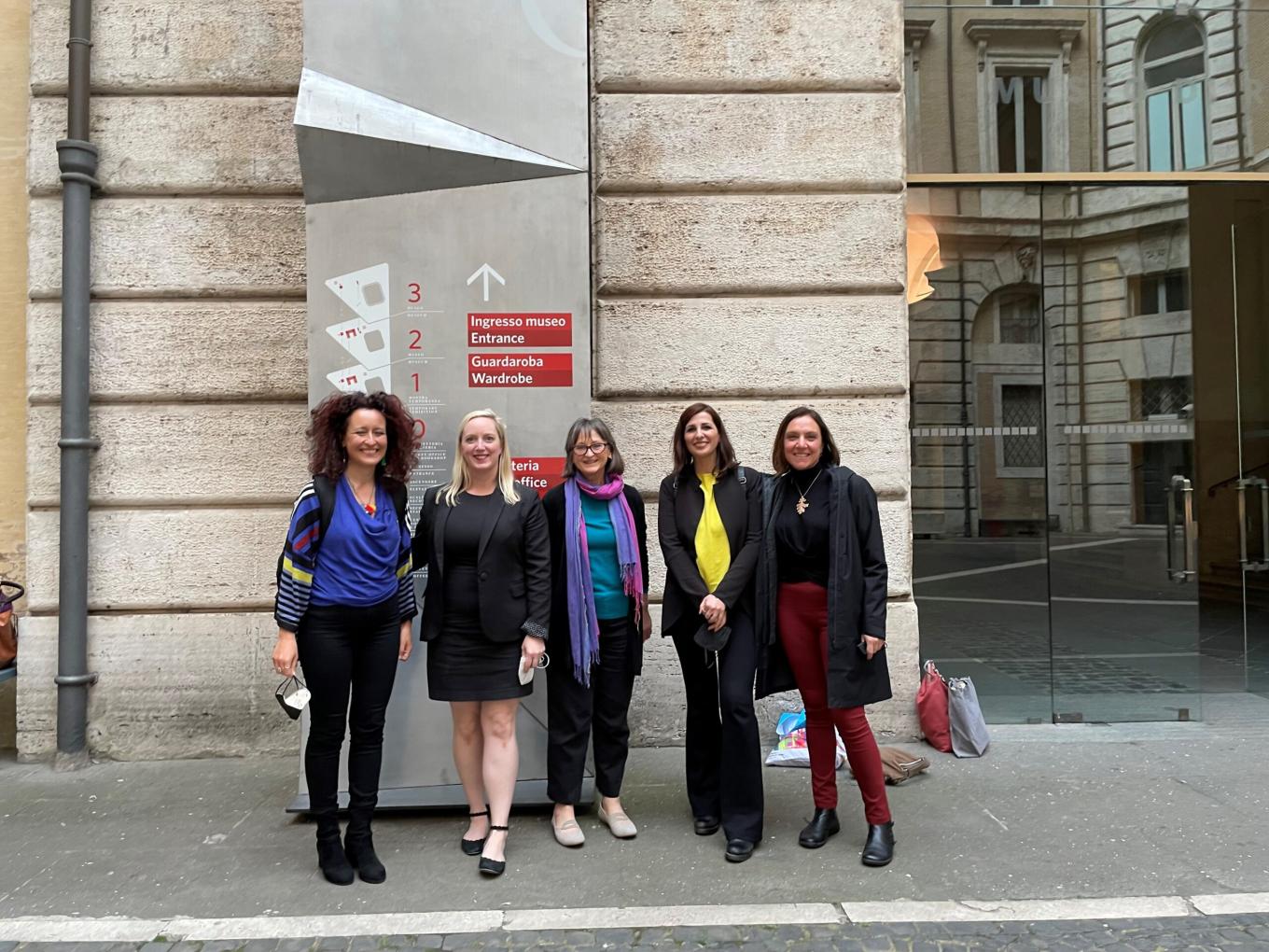 Museum staff from Palazzo Braschi, Gallery of Modern Art, Napoleon Museum, and The Phillips Collection outside Palazzo Braschi