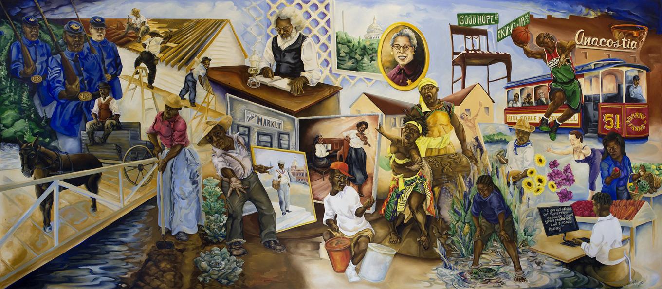 Rik Freeman's mural in Deanwood, 100 Years in African American History, 1993. Photo: Lou Parnale, 1993